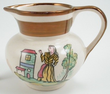 This was referred to as a Castle jug at Gray’s Pottery (see the website section Retailers, North America – USA, Skinners for more information). Almost 200 different designs have been recorded on these small jugs, half of them in North America, a sign they were extremely popular – for reasons unknown!