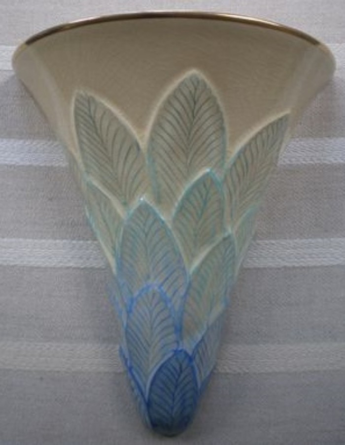 The shape, referred to as either a wall pocket or a wall vase, was made in two sizes: (approximately) 215mm/8½” deep x 190mm/7½” wide and 260mm/10¼”deep x 280mm/11” wide.