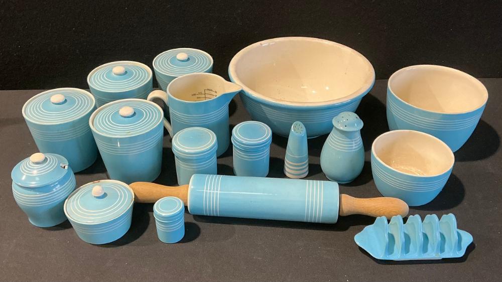 It is not known if the various pots shown in the sixth image are marked with pattern numbers or not, but the overall group gives a good insight into the extent of the Gaiety Ware kitchenware range.