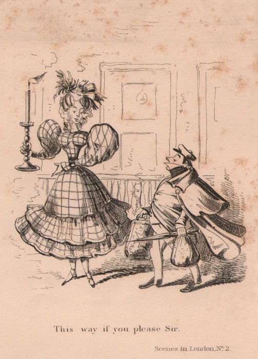 Frontispiece*: The Caricaturist’s Scrap Book – Drawn & Etched by H.Heath. The picture depicts a drawing-room scene with individuals and couples, young and old, joyously engaged in looking at their individual scrapbooks. The cover of one book has the date 1840. Even the ‘below stairs’ couple at the open door are amused with their scrapbook!