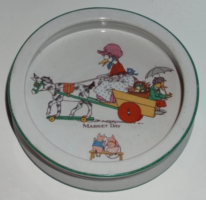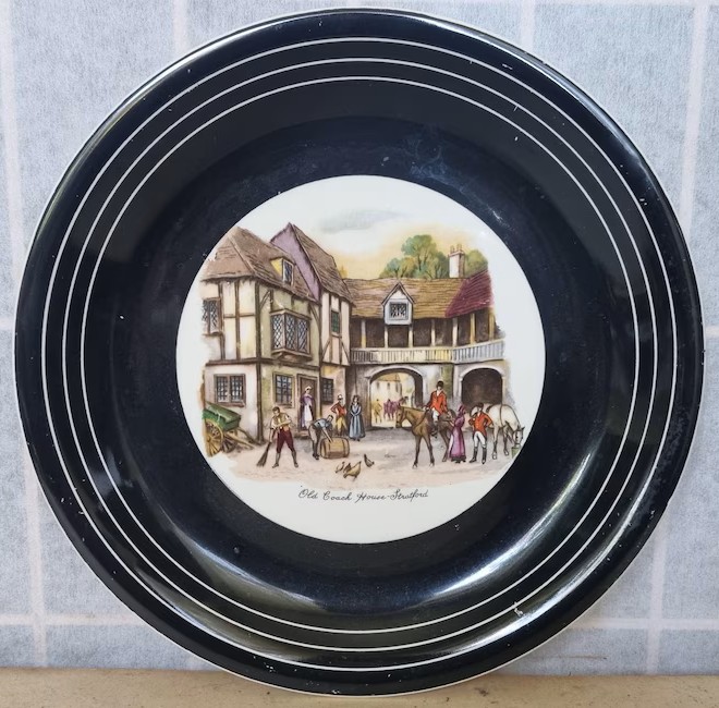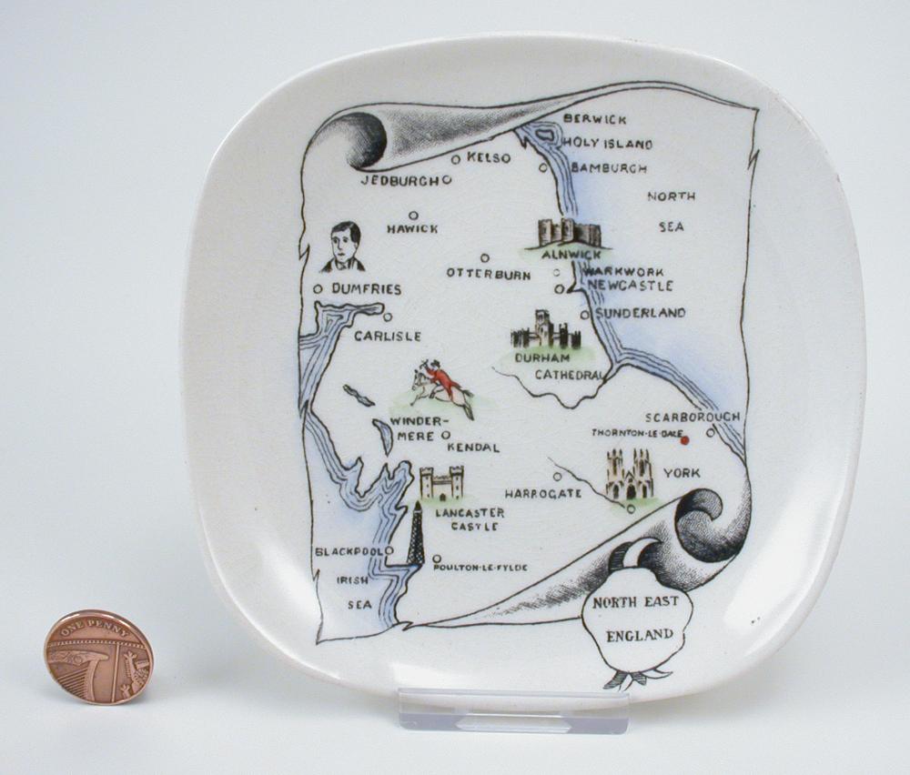 Many Gray’s Pottery designs, notably during the 1950s, used print images which may or may not be enamelled, but which carry the name of a person, place, event etc. The list below is of designs which include some text, most especially as a title or heading. Some of the words may have constituted official pattern names during the life of Gray’s Pottery, but there is no evidence to support this one way or the other.